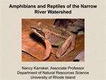 February: Dr. Nancy Karraker, URI Associate Professor in the Department of Natural Resources Science, described Amphibians and Reptiles in the Narrow River Watershed, including those that are threatened from the impacts of habitat loss, pollution, climate change, invasive species and disease.