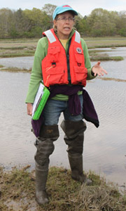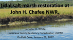 Dr. Jennifer White, Hurricane Sandy Resiliency Coordinator for the U.S. Fish & Wildlife Service, described a restoration project in the John H. Chafee National Wildlife Reserve to raise the elevation of saltmarshes so that plants can thrive. See photos of the saltmarsh grass planting and other restoration work in Narrow River.